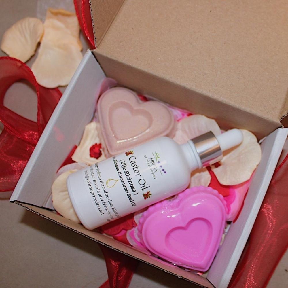 Poklon set koji spaja njegu i svakodnevni luksuz. Ulje ricinusa je pravi mali “beauty klasik” za rutinu njege, a dva prirodna sapuna donose nježno čišćenje i osjećaj svježine bez kompromisa. Idealan izbor za nekoga ko voli praktične, a opet posebne poklone.
