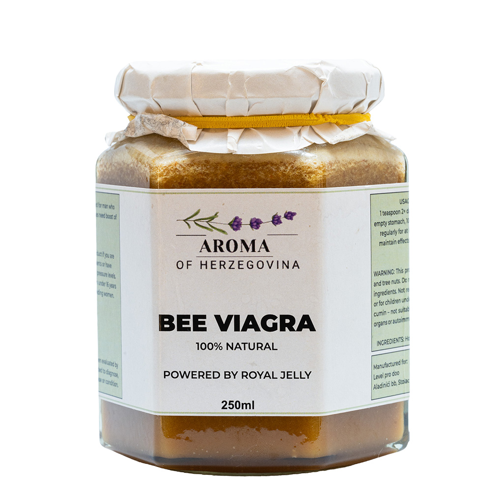 Bee Viagra is a natural honey-based product enriched with royal jelly, valued for its nutritional properties and long-standing traditional use. It combines the rich texture of honey with a distinctive aroma and full-bodied taste, offering a unique consumption experience. It is intended for those who appreciate natural products and wish to include a high-quality honey elixir in their daily routine.