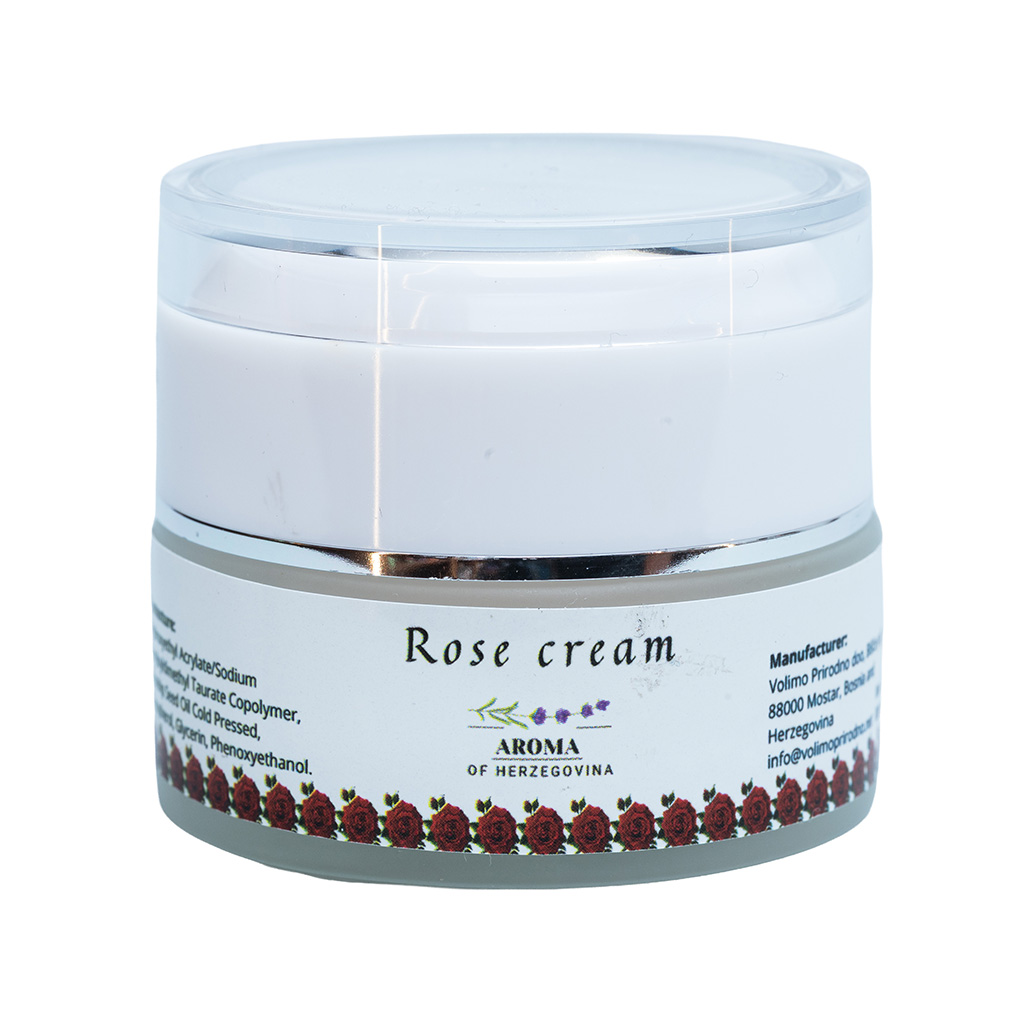 Rose cream je nježna i bogata krema namijenjena svakodnevnoj njezi suhe, osjetljive i normalne kože. Pažljivo formulirana kombinacija hidratantnih i njegujućih sastojaka pomaže u očuvanju prirodne ravnoteže vlage, omekšava kožu i doprinosi njenom glatkom i njegovanom izgledu. Krema se lako upija, ne ostavlja masni trag i idealna je za svakodnevnu upotrebu, pružajući koži osjećaj svježine, ugode i suptilan miris ruže.